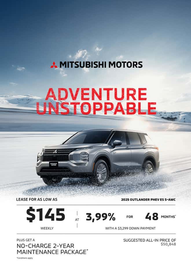 Thank you for visiting our website. We invite you to contact us and make an appointment for more information on our services. Whether for the purchase or rental of a new vehicle, a used vehicle, for the maintenance of your vehicle, to order parts or accessories for your Mitsubishi, for our body shop or the evaluation of the exchange value of your vehicle, rest assured of our full dedication to your expectations.